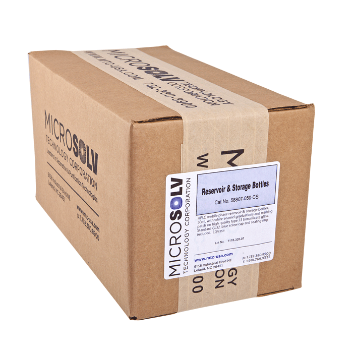 Bottles, HPLC Mobile Phase Storage, Glass, Clear, 50ml, Screw Top, GL32 Threads. MicroSolv Brand. 10/CS.