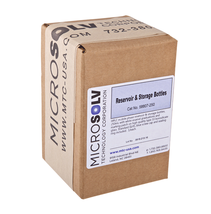 Bottle, HPLC Mobile Phase Storage, Glass, Clear, 250ml, Screw Top, GL45 Threads. MicroSolv Brand. 1 EA.