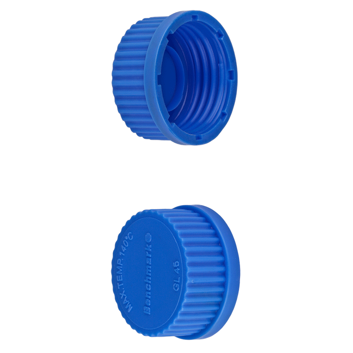 These Caps are made of Polypropylene and have GL45 threads making them a good choice for Mobile Phase Reservoir Bottles when the Bottle is empty to prevent dust and dirt from entering it.