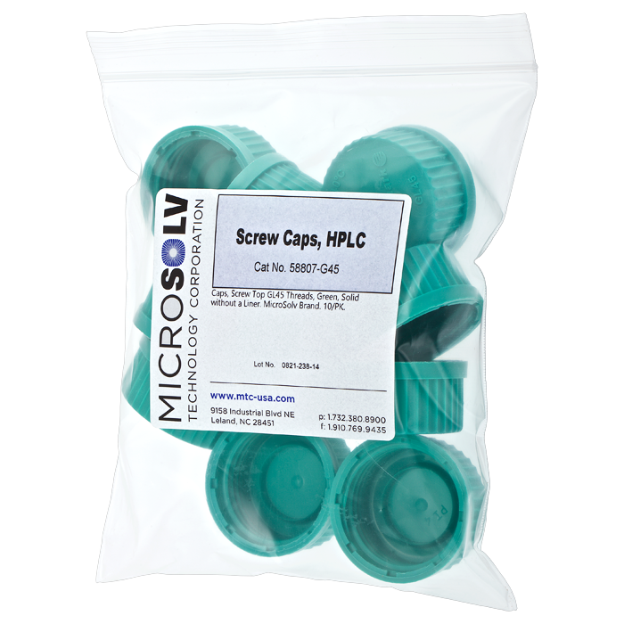 Caps, Screw Top GL45 Threads, Green, Solid without a Liner. MicroSolv Brand. 10/PK.
