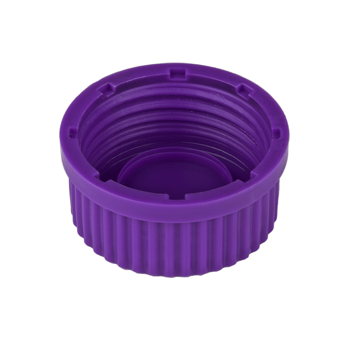 Caps, Screw Top GL45 Threads, Purple, Solid without a Liner. MicroSolv Brand. 10/PK.