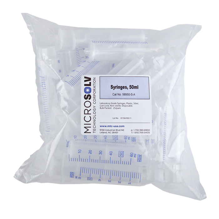 Syringe, Chrom. Disposable, 50ml, Luer Lock, Non Sterile. MicroSolv Brand. CLEARANCE. 25/PK.