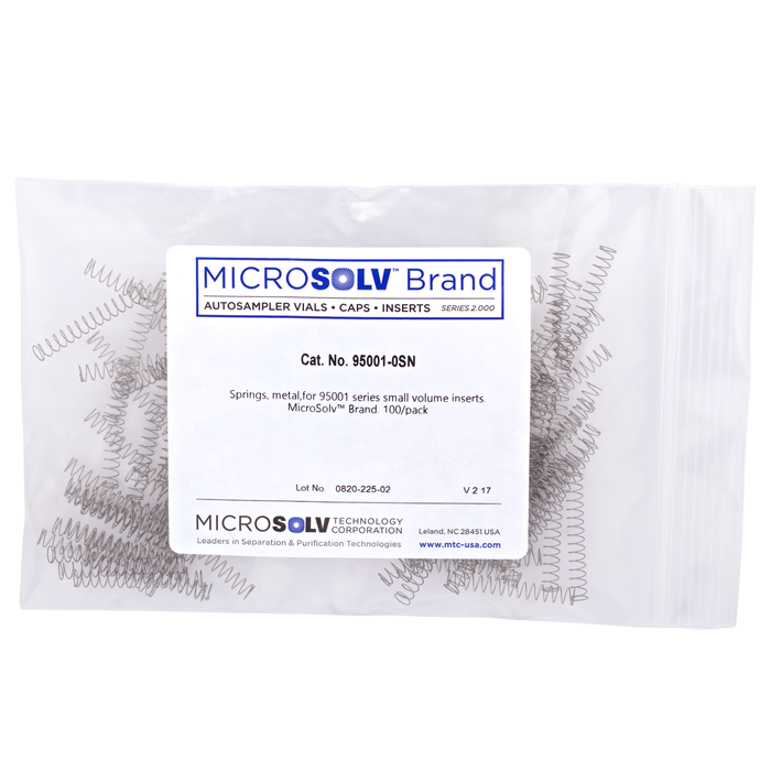 Springs, metal, for use with 95001 Series Low Volume Inserts in 1ml autosampler vials. 100/PK.