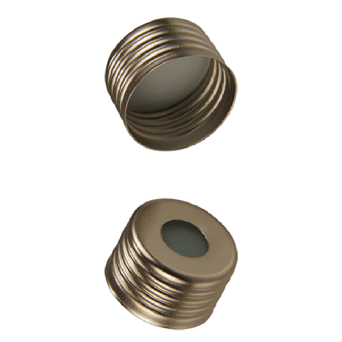 Silicone Rubber / PTFE Septa has a durometer of 45⁰ Shore A (hardness) and is 1.3mm thick. Cap has ND18 Screw Threads. Recommended with CTC®, Agilent®, Perkin Elmer TurboMax® 16, 40 & 110 and other autosamplers.