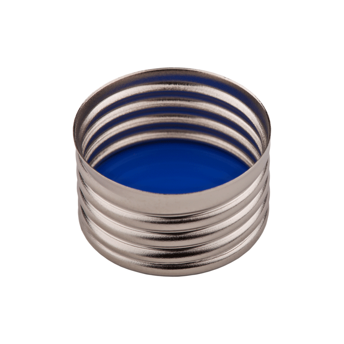 Silicone Rubber / PTFE Septa has durometer of 50⁰ Shore A (hardness) and is 1.5mm thick. Cap has ND18 Screw Threads. Click HERE for case quantities.