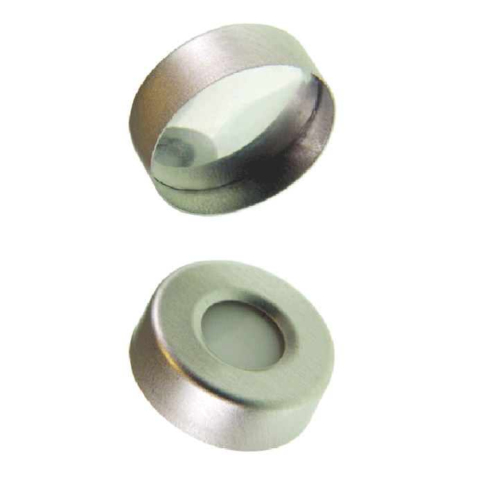 Caps, Headspace, Crimp Top, with Natural Silicone Rubber / Foil (125mil), High Purity Septa, fitted in Aluminum, Silver Caps with 10mm center holes. For use with 20mm Crimp Top Headspace Vials. BASIK Brand. 100/PK.