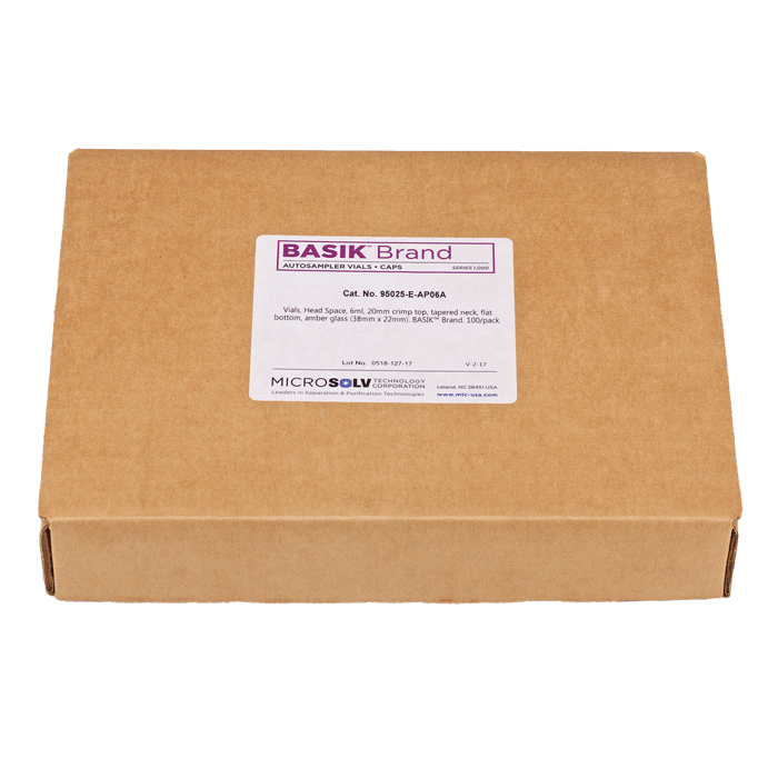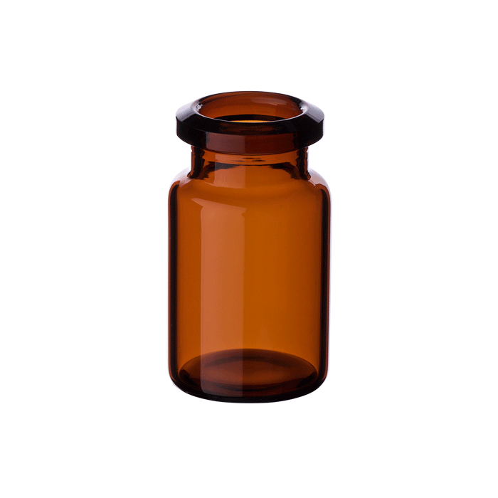 Vials, Headspace, Crimp Top, Glass. Amber. 6ml, 20mm Serum Finish, 22x38mm outer dimensions, Beveled Top and Flat Bottom with a Tapered Neck. Agilent Compatible. BASIK Brand. 100/PK.
