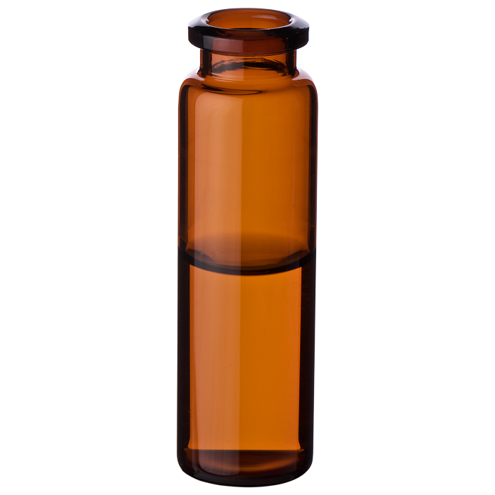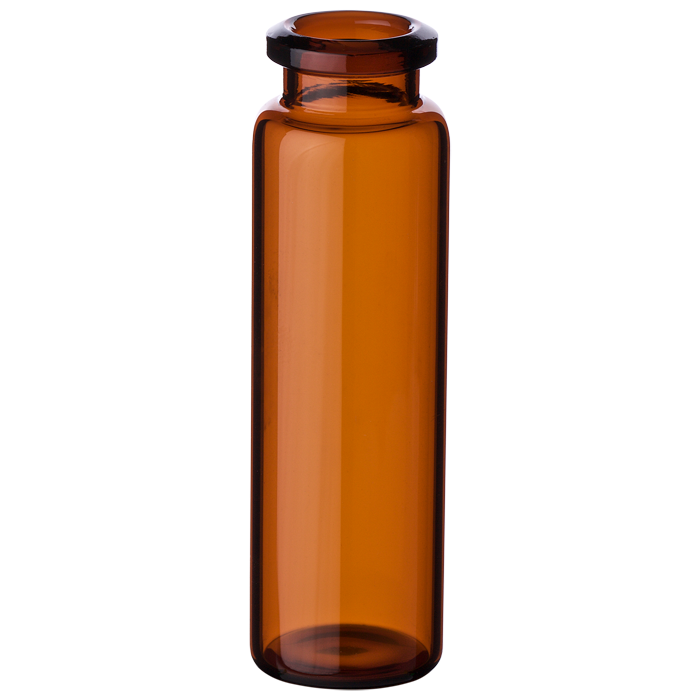Vials, Headspace, Crimp Top, Glass. Amber, 20ml, 20mm Serum Finish, 23x75mm outer dimensions, Beveled Top and Flat Bottom with a Tapered Neck. Agilent Compatible. BASIK Brand. 100/PK.