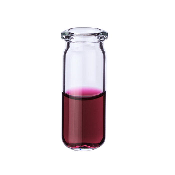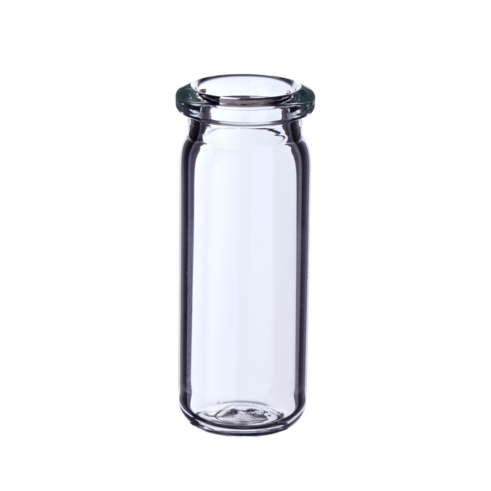 Vials, Headspace, Crimp Top, Glass. Clear. 9ml, 20mm Serum Finish, 19x50mm outer dimensions, Beveled Top and Rounded Bottom with a Tapered Neck. Perkin Elmer Compatible. BASIK Brand. 100/PK.
