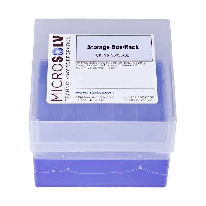 Storage Box for Headspace Vials. Blue, polypropylene holds 25 vials. Complete with lid. MicroSolv Brand. 1 EA.