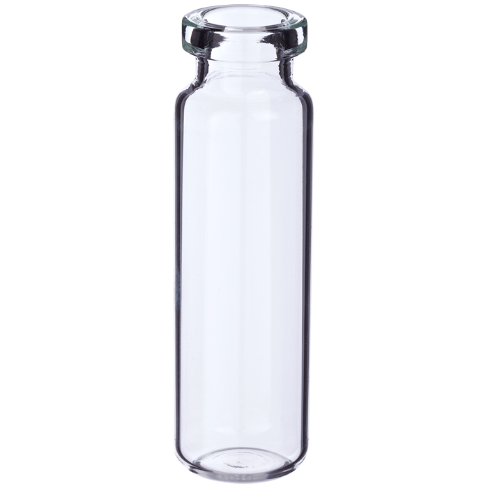 Vials, Headspace, Crimp Top, Glass. Clear. 20ml, 20mm Serum Finish, 22.5x75.5mm outer dimensions, Special Top and Flat Bottom for use with SPME Caps. CTC Compliant. MicroSolv Brand. 100/PK.