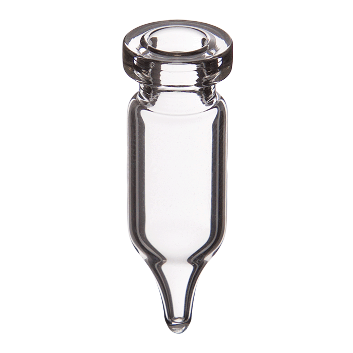 Vials, Crimp Top, Glass. Clear, 0.9ml, Tear Drop shape MicroVial, 11mm, 10x32mm outer dimensions. For use as an autosampler vial. BASIK Brand. 100/PK.