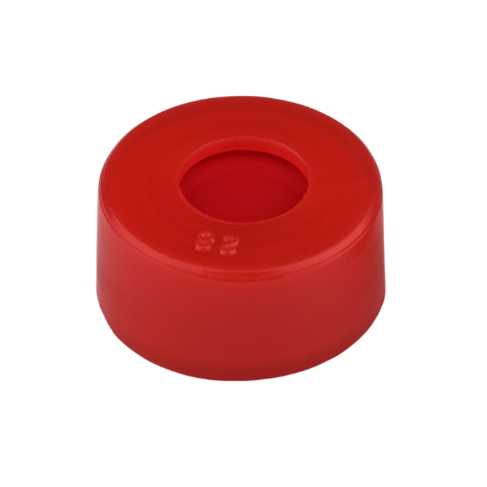 Caps, Snap Top, with Red PTFE / White Silicone Rubber / Red PTFE Septa, fitted in smooth, polyethylene, Red Caps. For use with 11mm, 12x32mm Snap Top autosampler vials. MicroSolv Brand. 1000/CS.