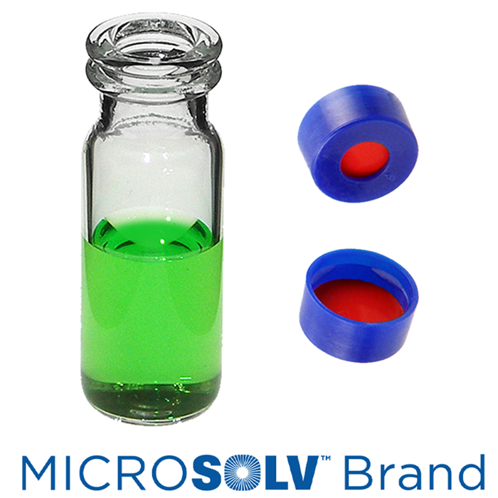 Vial & Cap Kit includes 100 EA 2ml, Snap Top, Clear Autosampler Vials and 100 EA matching Snap Caps with Red PTFE / White Silicone Rubber / Red PTFE Septa fitted in the Blue Caps. MicroSolv Brand Easy Purchase Pack. 1/PK.