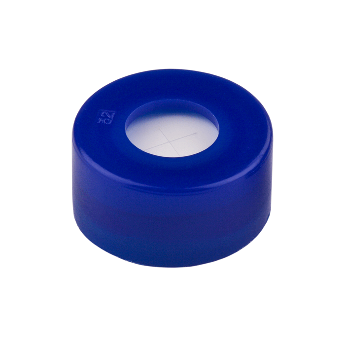 Caps, Snap Top, with Silicone Rubber / PTFE Pre-Slit Septa, fitted in smooth, polyethylene, Blue Caps. For use with 11mm, 12x32mm Snap Top autosampler vials. MicroSolv Brand. 10,000/CS.