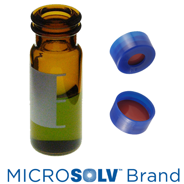 Vial & Cap Kit includes 100 EA 2ml, Snap Top, Amber Autosampler Vials with Write-On Patch and 100 EA matching Snap Caps with Red Rubber / PTFE Septa fitted in the Blue Caps. MicroSolv Brand Easy Purchase Pack. 1/PK.