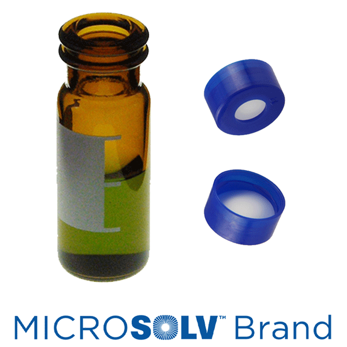 Vial & Cap Kit includes 100 EA 2ml, Snap Top, Amber Autosampler Vials with Write-On Patch and 100 EA matching Snap Caps with PTFE Septa fitted in the Blue Caps. MicroSolv Brand Easy Purchase Pack. 1/PK.