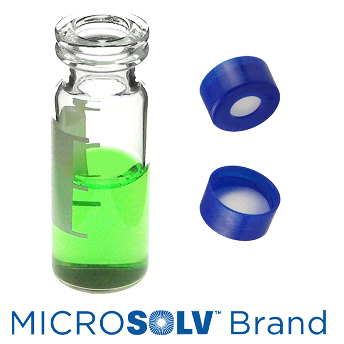 Vial & Cap Kit includes 100 EA 2ml, Snap Top, Clear Autosampler Vials with Write-On Patch and 100 EA matching Snap Caps with PTFE Septa fitted in the Blue Caps. MicroSolv Brand Easy Purchase Pack. 1/PK.