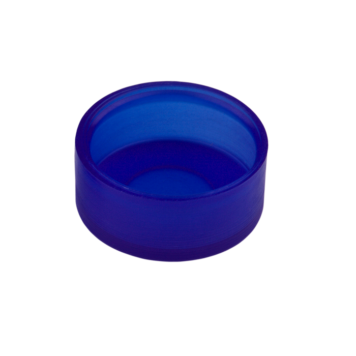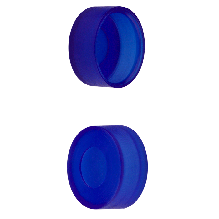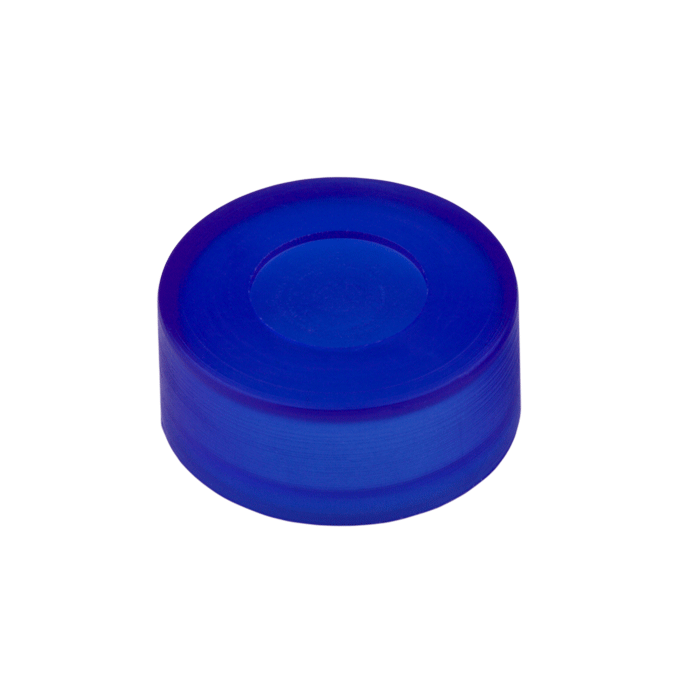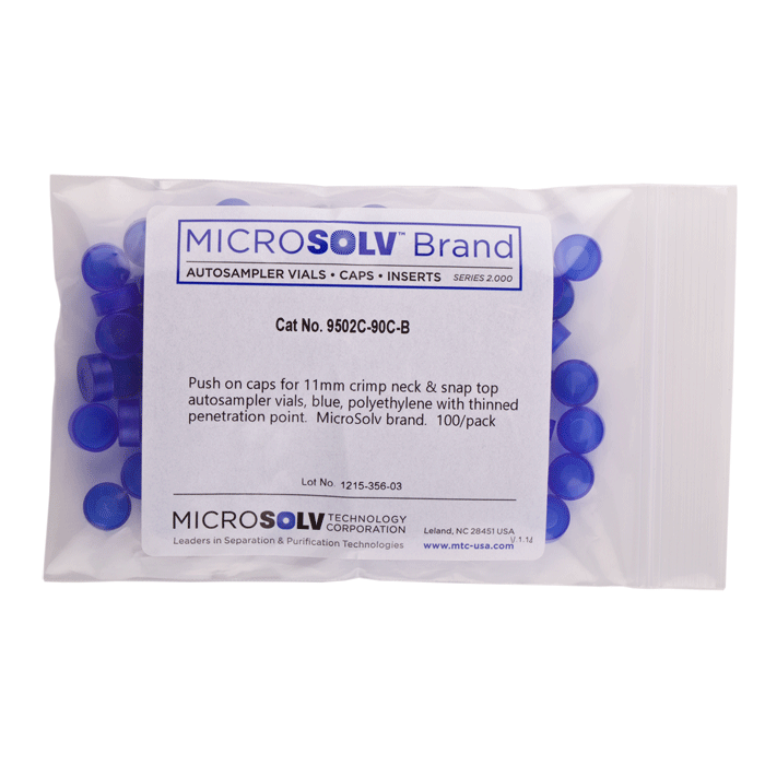 Caps, Push Top, with thinned penetration point, inserted in smooth, polyethylene, Blue Caps. For use with 11mm Crimp or Snap Top, 12x32mm autosampler vials. MicroSolv Brand. 100/PK.