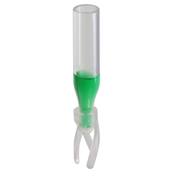 First hydrolytic, Class A, Type N51A, Borosilicate Glass. 250ul total fill volume and a 100ul usable volume. Features a flat, conical tip for excellent performance. Polypropylene springs are attached and residual volume is 2.5ul with most autosamplers.