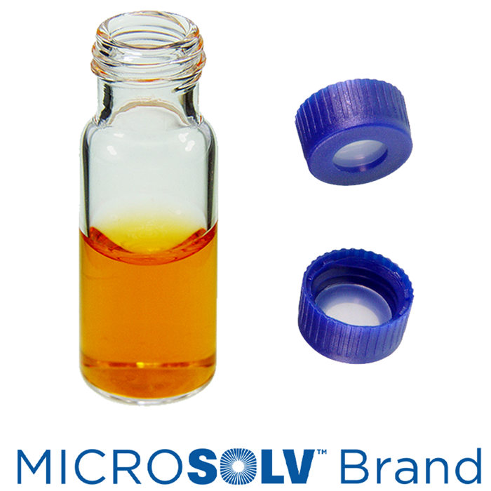 Vial & Cap Kit Includes 100 EA 2ml, Screw Top, Clear Autosampler Vials and 100 EA matching Screw Caps with Clear Silicone Rubber / Clear Tefzel, ultra-pure Septa, fitted in the Blue Caps. MicroSolv Brand Easy Purchase Pack. 1/PK.