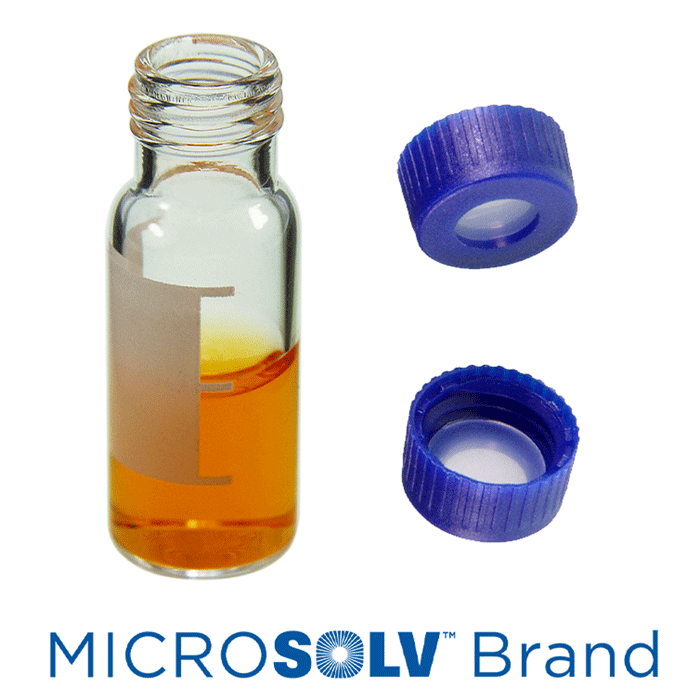 Vial & Cap Kit Includes 100 EA 2ml, Screw Top, Clear Autosampler Vials with Write-On Patch and fill lines and 100 EA matching Screw Caps with Clear Silicone Rubber / Clear Tefzel, ultra-pure Septa, fitted in the Blue Caps. MicroSolv Brand Easy Purchase Pack. 1/PK.