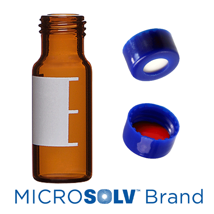 Vial & Cap Kit Includes 100 EA 2ml, Screw Top, Amber Autosampler Vials with Write-On Patch and fill lines and 100 EA matching Screw Caps with Silicone Rubber / PTFE Septa, fitted in the Robo Style, Blue Caps. MicroSolv Brand Easy Purchase Pack. 1/PK.