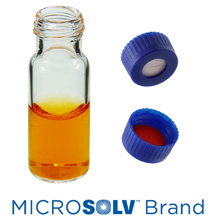 Vial & Cap Kit Includes 100 EA 2ml, Screw Top, Clear Deactivated Autosampler Vials and 100 EA matching Screw Caps with Silicone Rubber / PTFE Pre-Slit Septa, bonded in the Blue Caps, MicroSolv Brand Easy Purchase Pack. 1/PK.