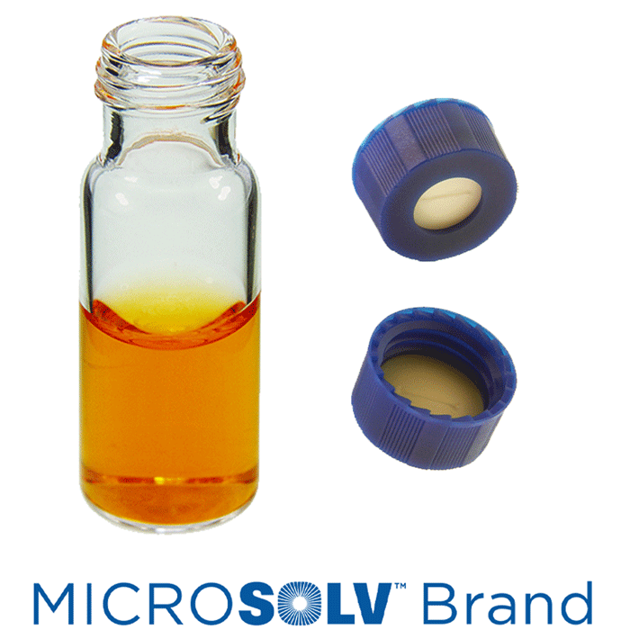 Vial & Cap Kit Includes 100 EA 2ml, Screw Top, Clear Autosampler Vials and 100 EA matching Screw Caps with White Silicone Rubber / Tan PTFE Pre-Slit Septa, fitted in the Blue Caps. MicroSolv Brand Easy Purchase Pack. 1/PK.