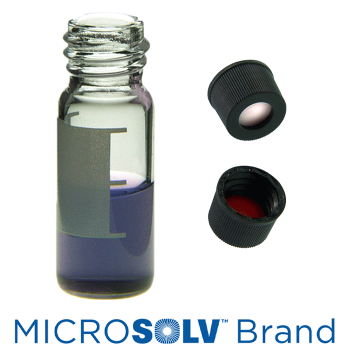 Vial & Cap Kit Includes 100 EA 2ml, Wide Mouth, Screw Top, Clear Autosampler Vials with Write-On Patch and fill lines and 100 EA matching Screw Caps with Silicone Rubber / PTFE Septa, bonded in the Black Caps, MicroSolv Brand Easy Purchase Pack. 1/PK.