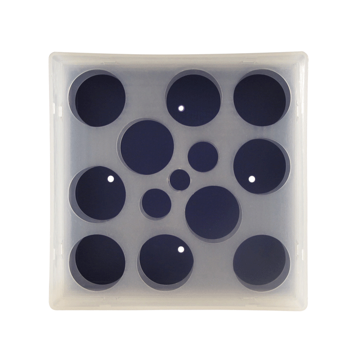 Lid prevents condensation on the caps minimizing contamination during storage.