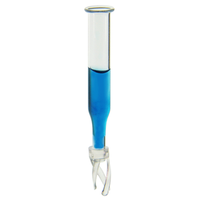 Inserts, Low Volume for Vials, Glass. Clear, Deactivated, 300ul fill volume with a conical point and 6x38mm outer dimensions with plastic spring attached. For use in 4ml autosampler vials. AQ Brand. 100/PK.