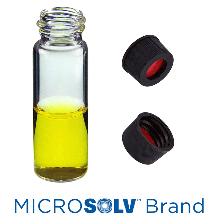 Vial & Cap Kit Includes 100 EA 4ml, Screw Top, Clear Autosampler Vials and 100 EA matching Screw Caps with Red PTFE / White Silicone Rubber / Red PTFE Septa, fitted in the Black Caps, MicroSolv Brand Easy Purchase Pack. 1/PK.