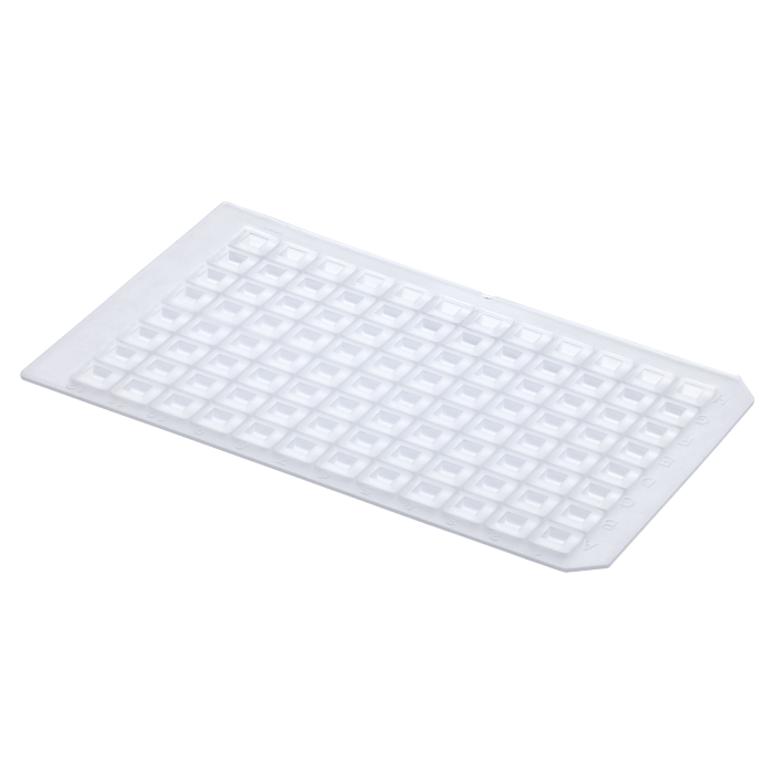 This Sealing Mat is made of high purity Silicone Rubber for 96 Well Plates. Each well is Pre-Slit for easier penetration by Auto-injectors. The Wells are Square.