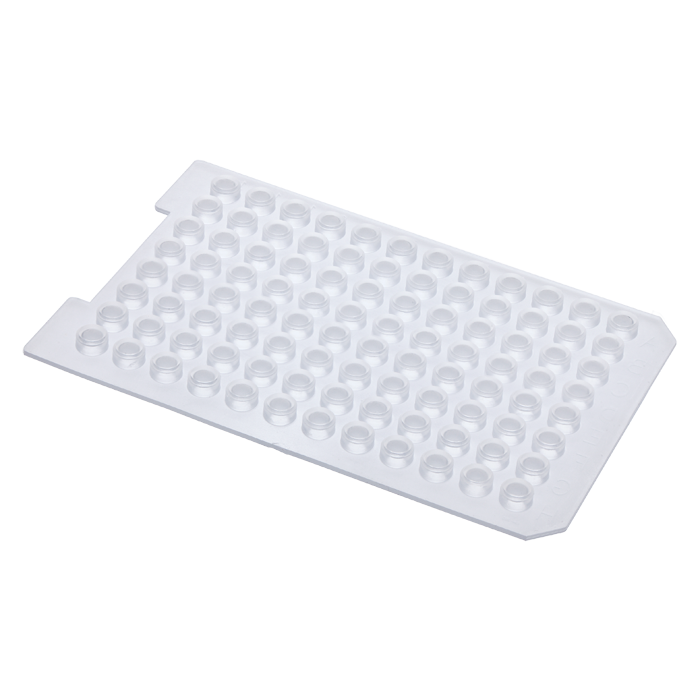 This Sealing Mat is made of high purity Silicone Rubber for 96 Well Plates. The Wells are Round Bottom.