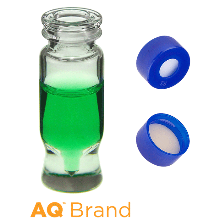 Vial & Cap Kit includes 100 EA 1.2ml, MRQ, Snap Top, Clear Autosampler Vials and 100 EA matching Snap Caps with White Silicone Rubber / Tan PTFE Septa fitted in the Blue Caps. AQ Brand Easy Purchase Pack. 1/PK.