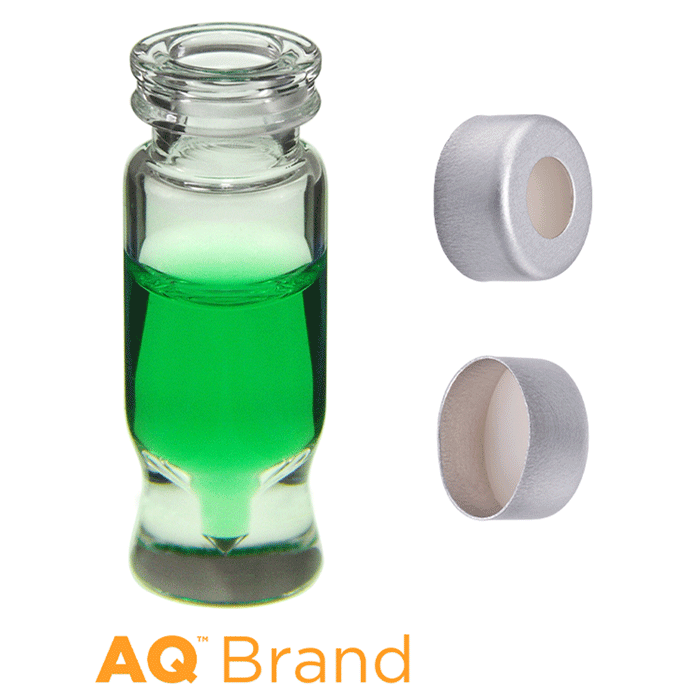 Vial & Cap Kit includes 100 EA 1.2ml, MRQ, Snap / Crimp Top, Clear Autosampler Vials and 100 EA matching Crimp Caps with Clear AQR Silicone Rubber / Clear PTFE, ultra-pure Septa, fitted in the Silver Caps. AQ Brand Easy Purchase Pack. 1/PK.