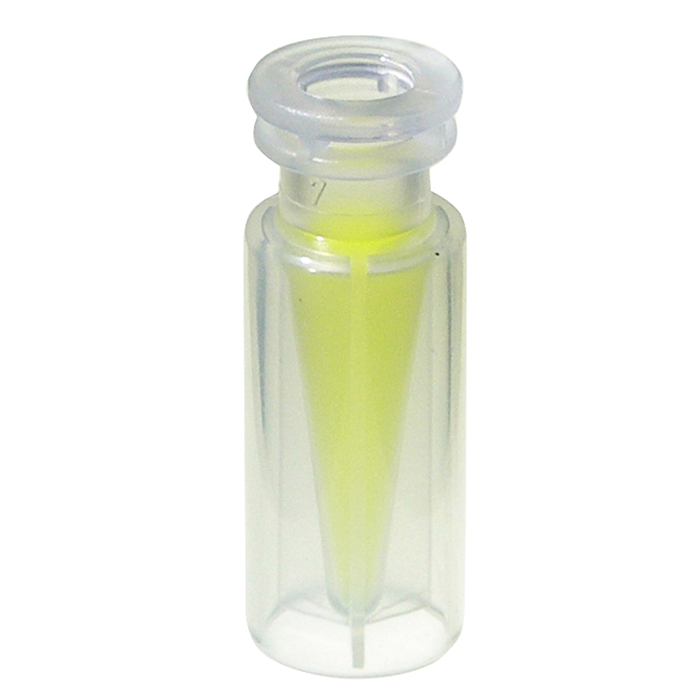 This narrow mouth, vial is manufactured with virgin, medical grade polypropylene and has a clear, translucent, built-in insert with a 300ul total fill capacity. Residual volume can be as low as 2ul depending on the autosampler and viscosity of samples used.
