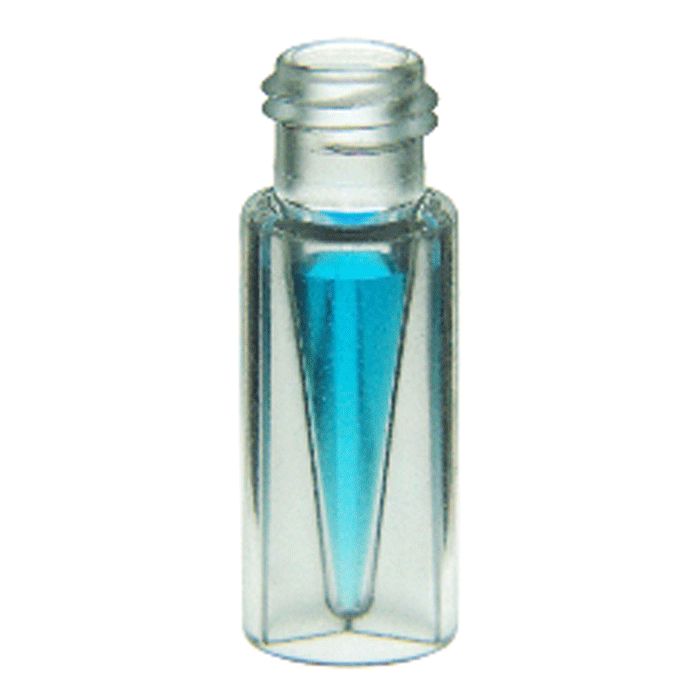 This narrow mouth, vial is manufactured with virgin, medical grade polymethylpentene which produces the visually clearest, translucent, built-in insert with a 300ul total fill capacity. Residual volume can be as low as 2ul depending on the autosampler and viscosity of samples used.