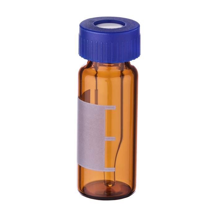 Vial & Cap Kit Includes 100 EA 300ul, Fused Insert, Screw Top, Amber Autosampler Vials with Write on Patch and fill lines and 100 EA matching Screw Caps with Tan Silicone Rubber / White PTFE Septa bonded in the Blue Caps. Vials and Caps are Pre-assembled. AQ Brand Easy Purchase Pack. 1/PK.