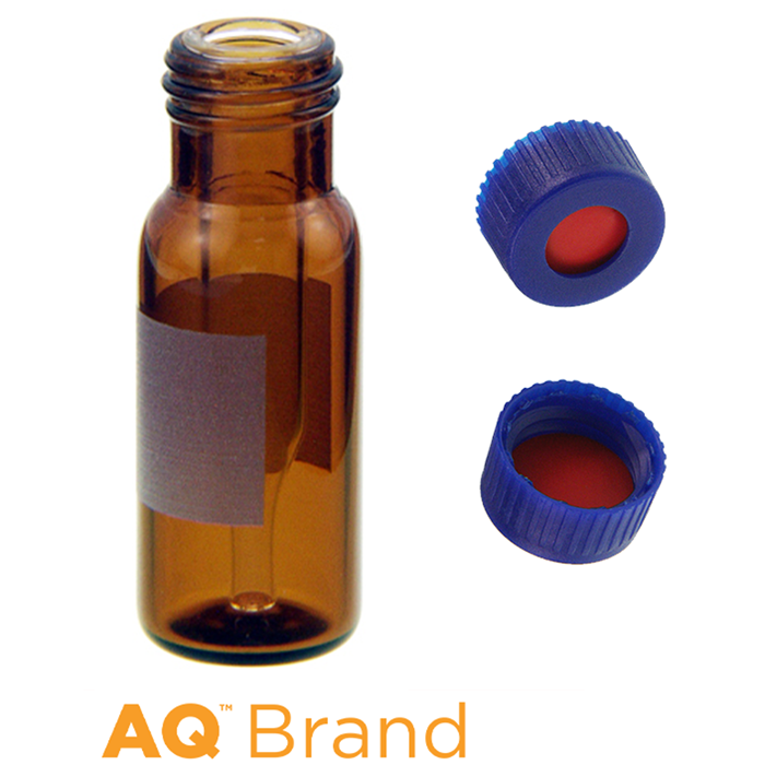 Vial & Cap Kit Includes 100 EA 300ul, Fused Insert, Screw Top, Amber Deactivated Autosampler Vials with Write on Patch and fill lines and 100 EA matching Screw Caps with Red PTFE / White Silicone Rubber / Red PTFE Septa, bonded in the Blue Caps, AQ Brand Easy Purchase Pack. 1/PK.