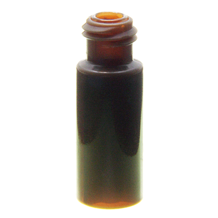 These narrow mouth vials are made with amberized, TPX (polymethylpentene) Plastic and have a first hydrolytic, Type N51A, Clear, pharmaceutical grade, Borosilicate Glass Insert, with a conical bottom, embedded in the plastic. These vials have a 200ul total fill volume and will not leak from the bottom if the needle crashes the insert. The Insert will not move in the vial.