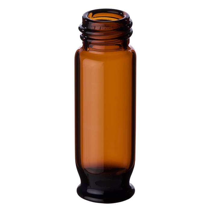 Vials, Screw Top, Glass. Amber, 3.8ml, Max Recovery™, 13-425mm threads, 14.75x45mm outer dimensions for 13mm screw caps. For use as an autosampler vial or storage bottle. AQ Brand. 100/PK.