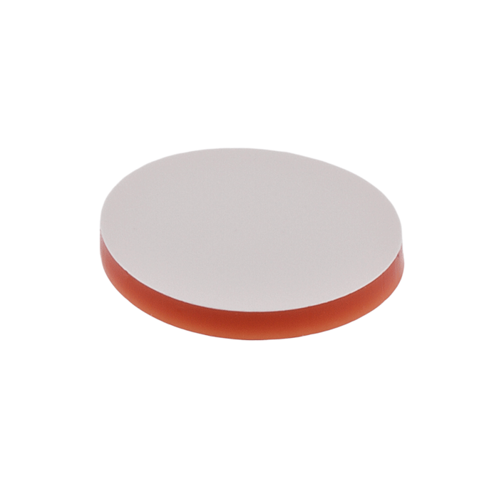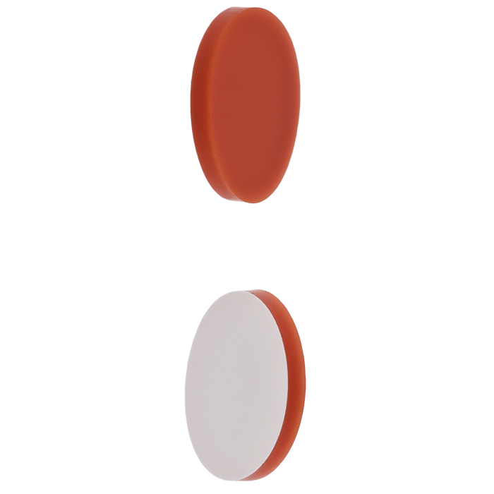 Septa, 9mm, Orange Silicone Rubber / White PTFE that is 0.040" thick and 0.344" diameter for use in 9-425mm thread caps. Caps sold separately. BASIK Brand. 1000/CS.