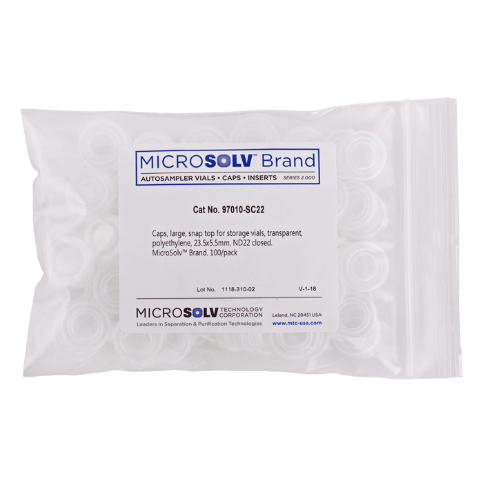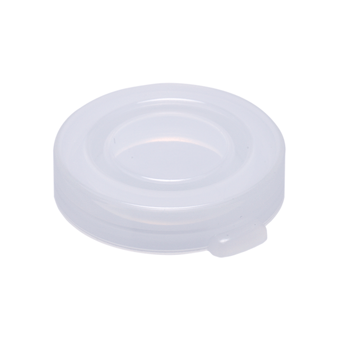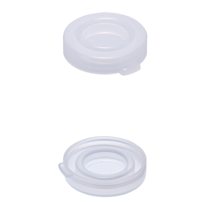 Transparent Polyethylene Cap snaps on to an Econo Push Top Storage Vials with ND22 beveled Tops. Liners are not required because the Cap is solid and seals with the Snap Top device of the vial. Cap has 23.5x5.5mm outer dimensions.