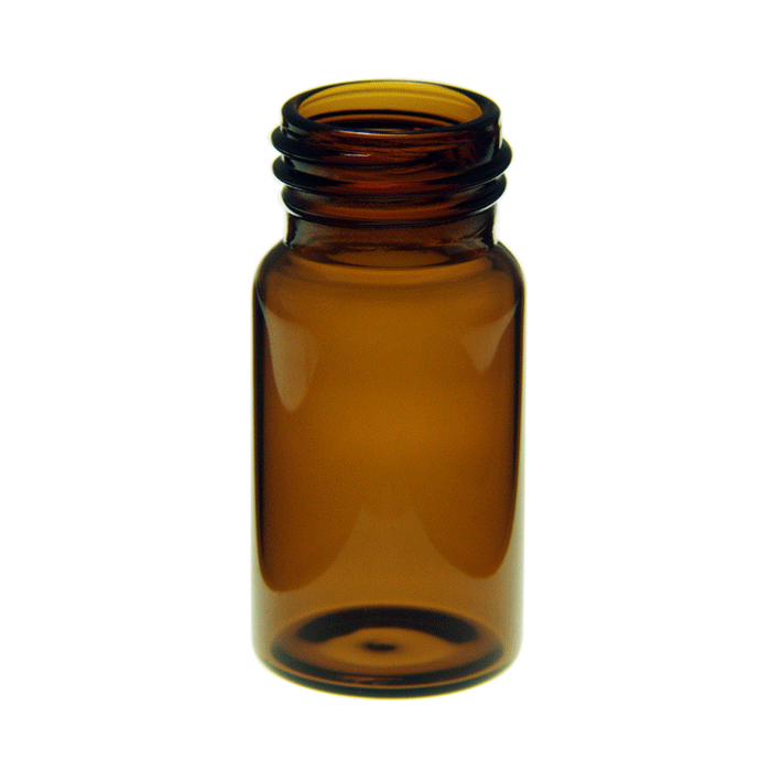 First hydrolytic, Class A, Type N51A, Pharmaceutical grade Borosilicate Glass, amberized. Amber vials are often used for light sensitive compounds and considered low actinic. Fill volume is approximately 23.3ml.