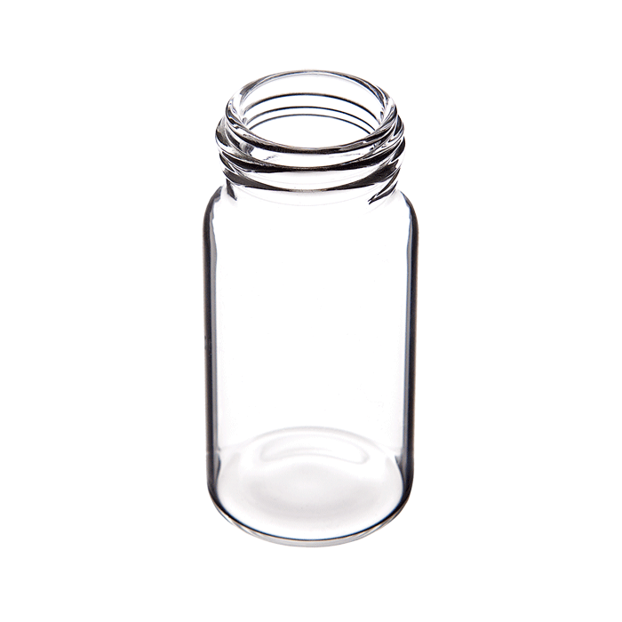 First hydrolytic, Class A, Type 33, Borosilicate Glass. Fill volume is approximately 23.3ml. Use 24mm screw caps that have 24-414 threads, sold separately.