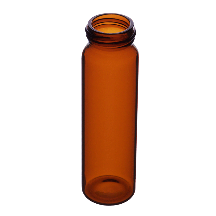 Vials, EPA Style, Glass. Amber, 40ml. 95x27.5mm outer dimensions. For use as an EPA test vial or storage bottle. ND24 threads. BASIK Brand. 100/PK.