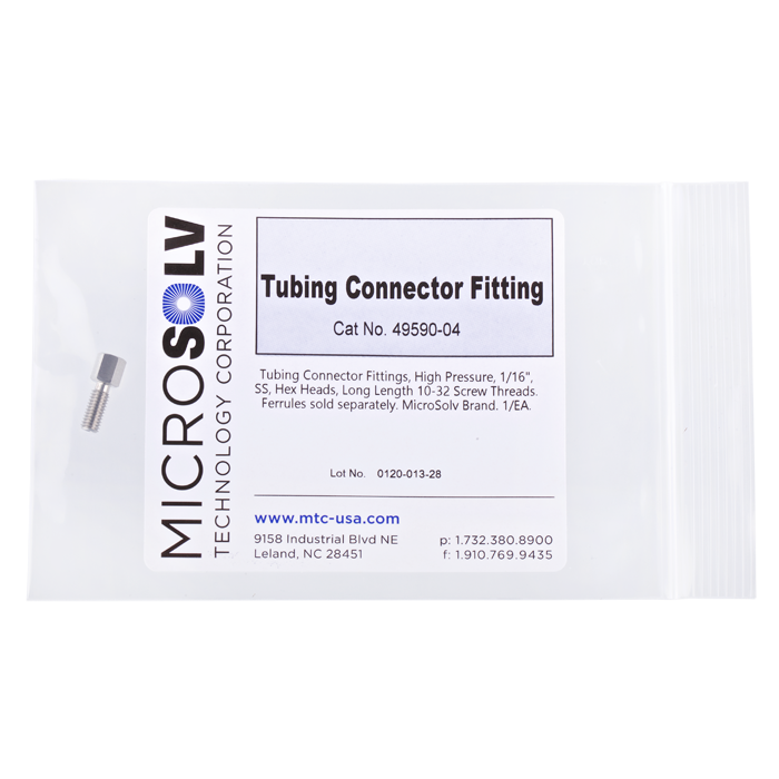 These tubing connector nuts used to connect stainless steel tubing in the high pressures zones of HPLC systems. This 316L stainless steel fitting has a standard diameter hexagonal head for wrenching the nut.
