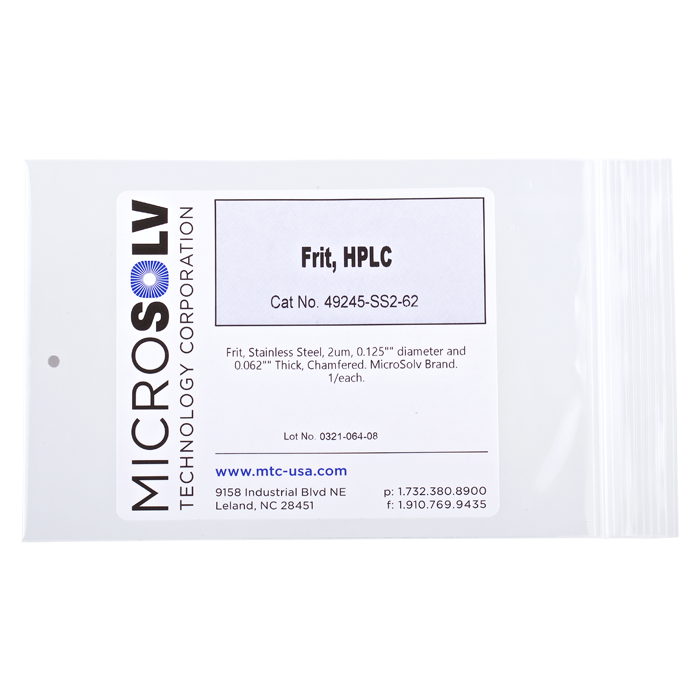 Frit, Stainless Steel, 2 um, 0.125 inch diameter and 0.062 inch thick, Chamfered, EPP-Porous Products brand. CLEARANCE. 1 EA.
